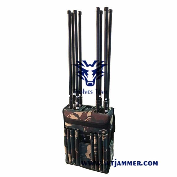 GSM 800mhz WiFi 2.4G 3G 4G GPS 50m Backpack Signal Jammer Images |